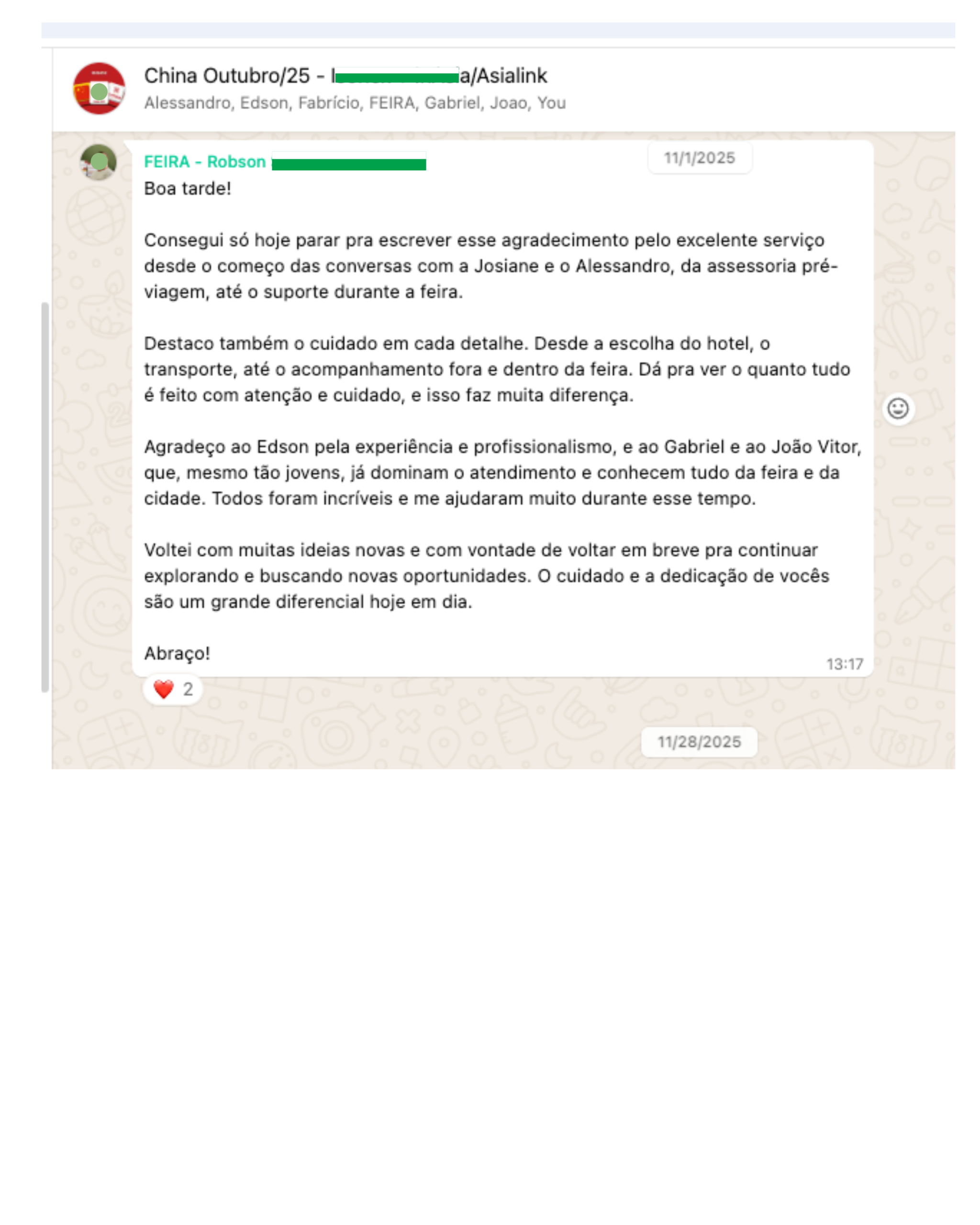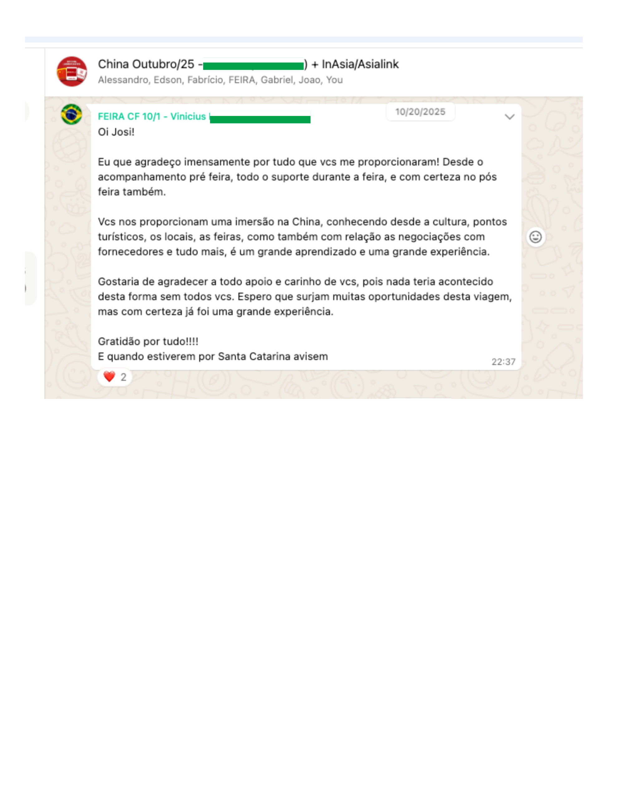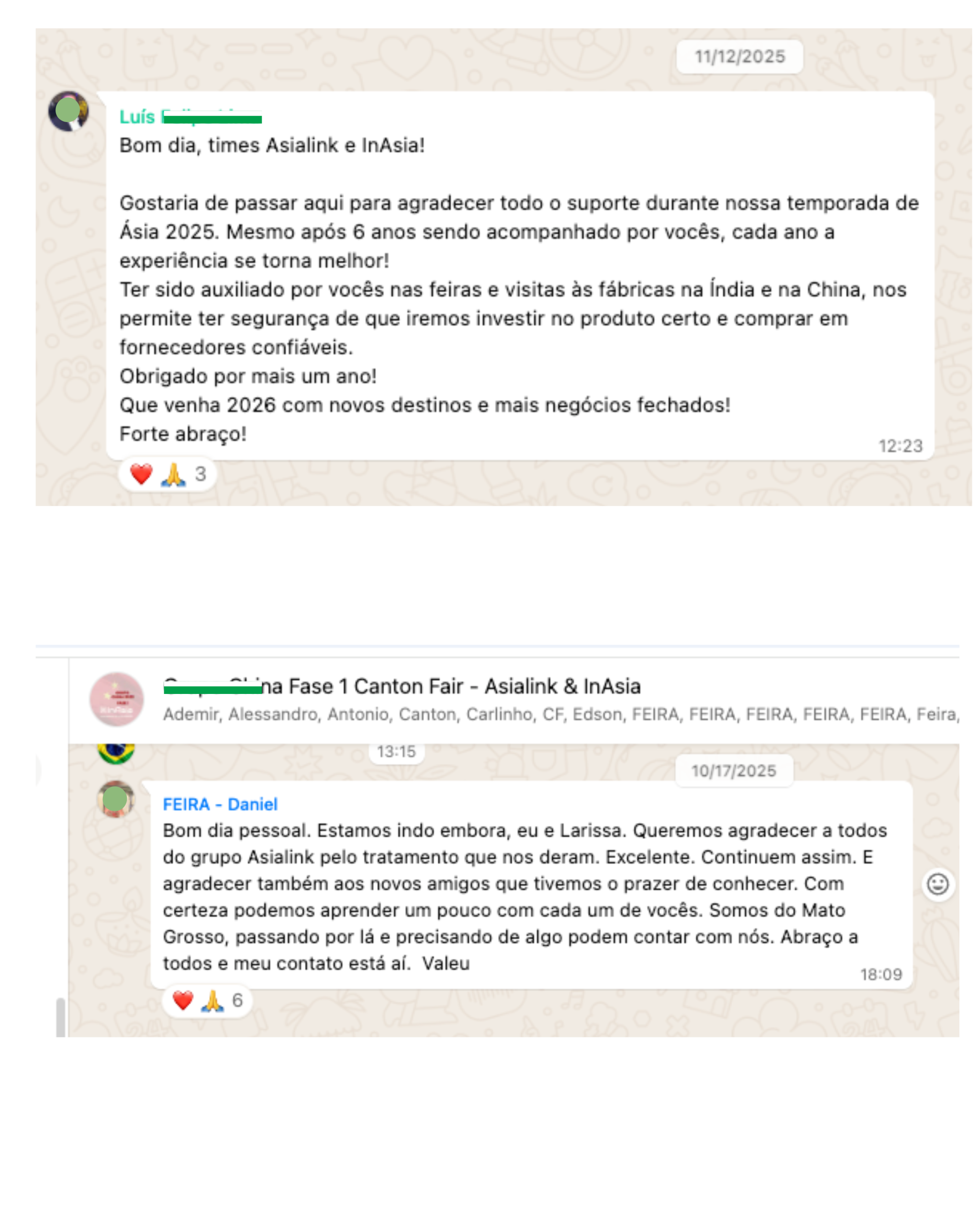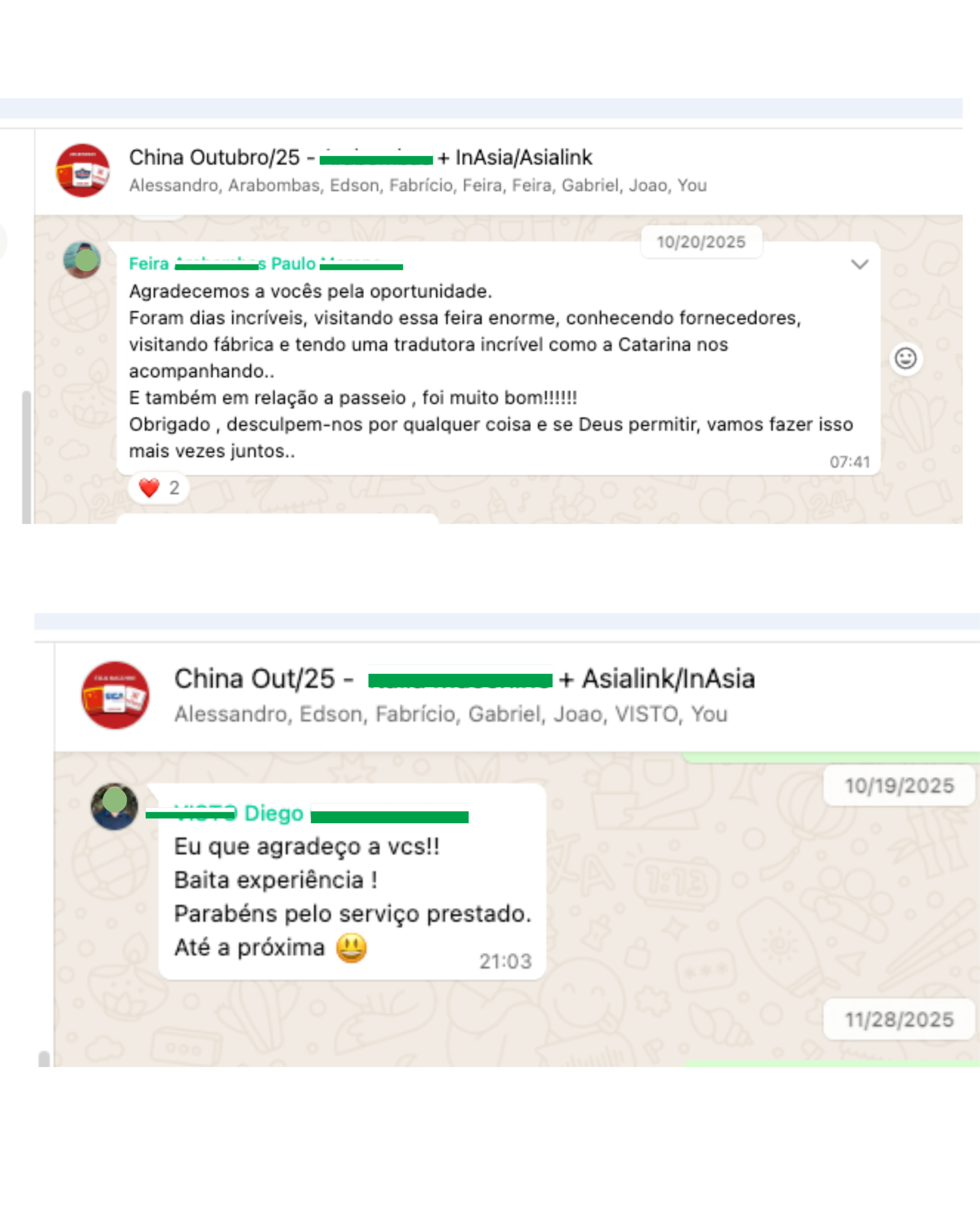 • Networking estratégico: Facilitamos conexões valiosas com fabricantes, parceiros locais e outros empresários, ajudando a expandir suas oportunidades no mercado asiático.